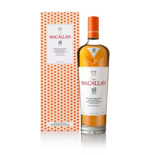 • Region: Scotland – Hailing from the revered Speyside region, The Macallan 18 Years Colour Collection exemplifies the art of whisky-making, using natural sherry-seasoned oak casks and meticulous craftsmanship.